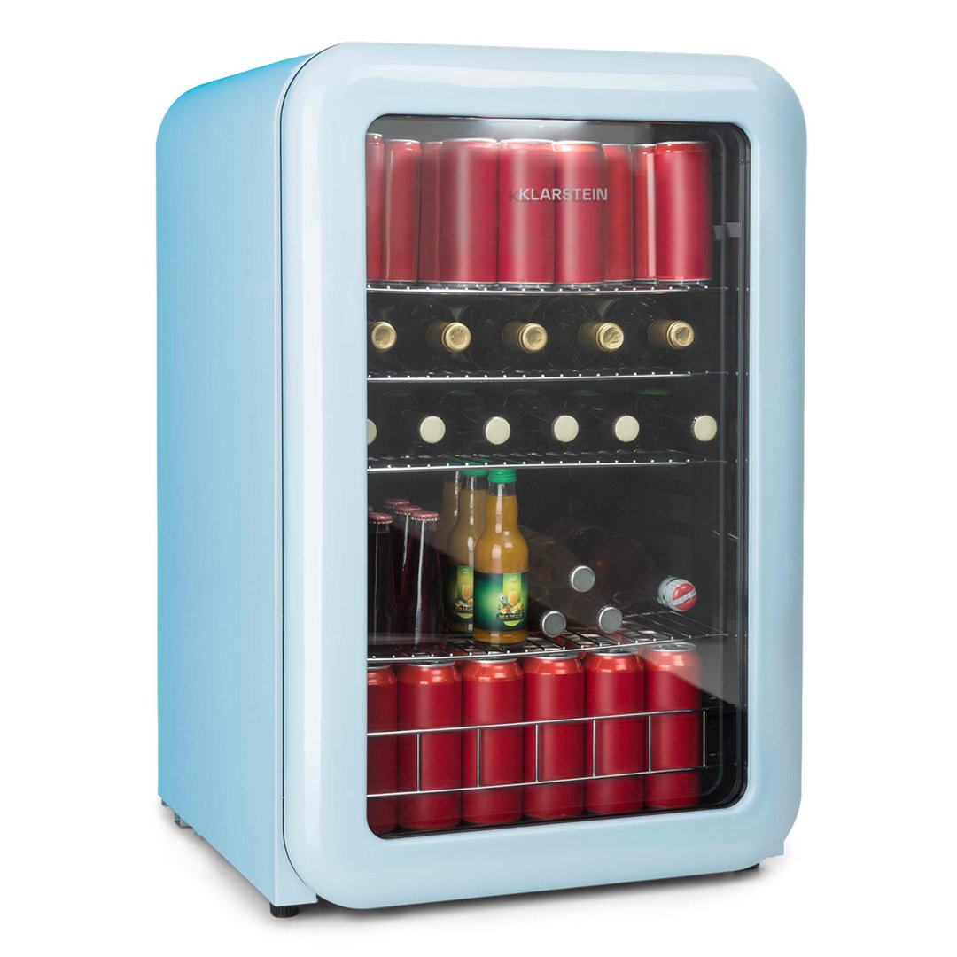 Aus diesem stilvollen Getränkefach im fünfziger-Retro-Look schmecken frisch gekühlte Leckereien besonders gut. Er istbesonders umweltschonend, und mit Hilfe des Reglers im Innern lässt sich die Temperatur individuell und bequem einstellen. Klarstein Farbe: Blau