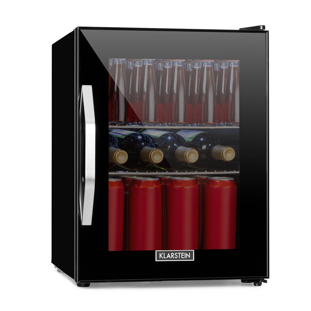 Optimale Kühlung in edlem Schwarz: Der Kühlschrank ist der perfekte Aufbewahrungsort für frische Lebensmittel und kühle Getränke in kleinen Haushalten, Partyräumen, Büros oder Gartenhäusern. Mit seinen kompakten Maßen bietet der Kühlschrank viel Stauraum: 35 Liter Nutzinhalt sorgen auf zwei Metallablagen für jede Menge Platz für eine Vielzahl von Lebensmitteln – von Joghurt und Käse bis hin zu Fleisch und Gemüse – oder zum Kühlen von Softdrinks. Mit den sechs Ablagen kannst du verschiedene Möglichkeiten anwenden, um den Innenraum flexibel zu nutzen. Für die Kühlung stehen fünf verschiedene Stufen zur Verfügung, mit denen du die Leistung je nach Belieben regulieren kannst. Der Beersafe M besticht vor allem durch sein auffälliges Design: Eine Glastür mit schwarzem Rahmen ermöglicht einen ständigen Blick in das Innere des mattschwarzen Gehäuses. Dank des EcoExcellence-Systems ist er außerdem besonders umweltfreundlich: Sein leistungsstarkes Kompressionskühlsystem ist so sparsam, dass er sich die Energieeffizienzklasse A++ verdient hat. Außerdem ist der Kühlschrank mit einem Geräuschpegel von nur 42 dB extrem leise, sodass er auch in einem Hotel oder Gästezimmer eingesetzt werden kann. Dieser energieeffiziente Kühlschrank ist eine Bereicherung für jeden kleinen Haushalt. Klarstein