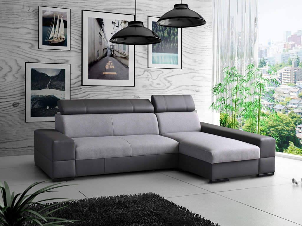 Das Model Aert besticht durch eine minimalistische, moderne Form und die charakteristischen Farbkontraste der Stoffe werden die Aufmerksamkeit der Gäste auf sich ziehen. Bewegliche Kopfstützen sorgen für Komfort. Dieses moderne Ecksofa ist mit einer bequemen Bettfunktion und einem praktischen Bettkasten ausgestattet. Perspections Ausrichtung: Ausrichtung Rechts
