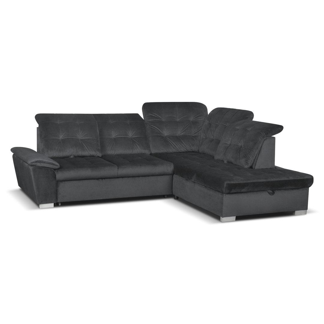 Schönes Ecksofa mit Ziernähten, beweglichen Kopfstützen und Rückenlehne ModernMoments Polsterfarbe: Grau, Ausrichtung: Rechts ausgerichtet