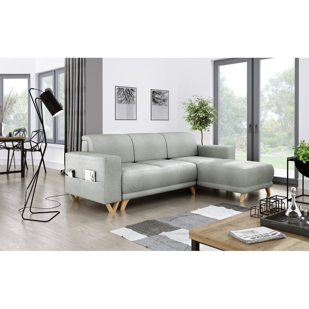 Dies ist ein stilvolles Ecksofa mit einer Schlaffunktion. Isabelline Polsterfarbe: Grau