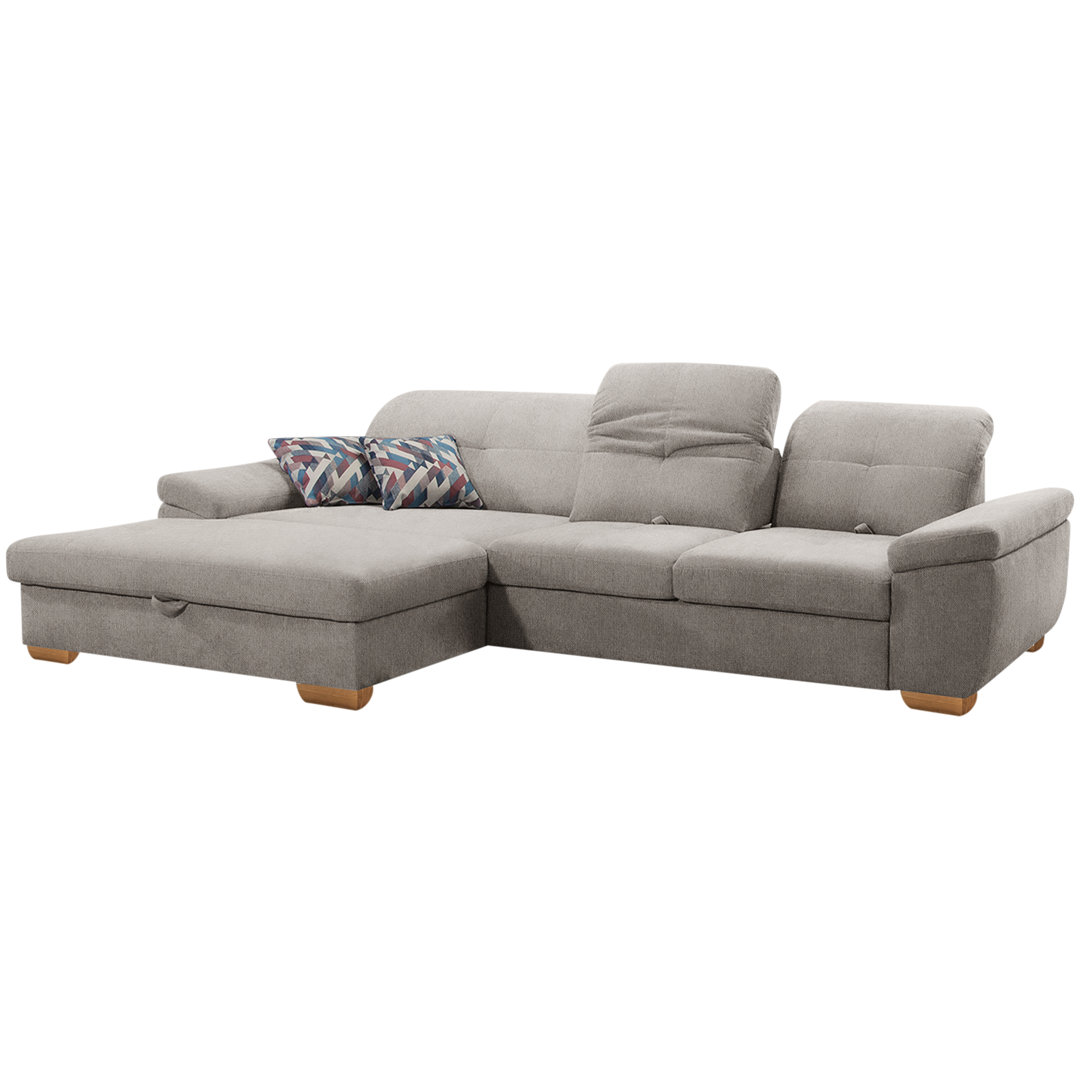 Zu einer Wohlfühloase in Ihren eigenen vier Wänden wird dieses Ecksofa mit der Sitztiefenverstellung und der Rückenverstellung. Außerdem kann dieses Modell mit einer Bettfunktion und einem Bettkasten bestellt werden und wir damit im handumdrähen zu einem Gästebett mit ausreichend Stauraum für Kissen und Decken. Brayden Studio Polsterfarbe: Grau/Braun Chenille, Ausrichtung: Ausrichtung Links