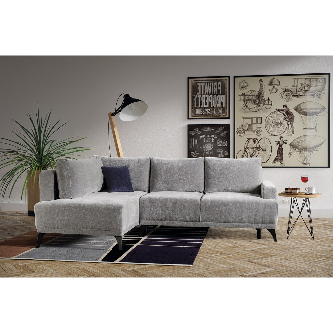 Die vier großen Rückenkissen und die komfortable Polsterung sorgen dafür, dass das Ecksofa Menifee bequem ist. Es kann auch in ein Bett umgewandelt werden. Außerdem bietet es viel Stauraum für Bettwäsche und so weiter. Corrigan Studio Ausrichtung: Links ausgerichtet
