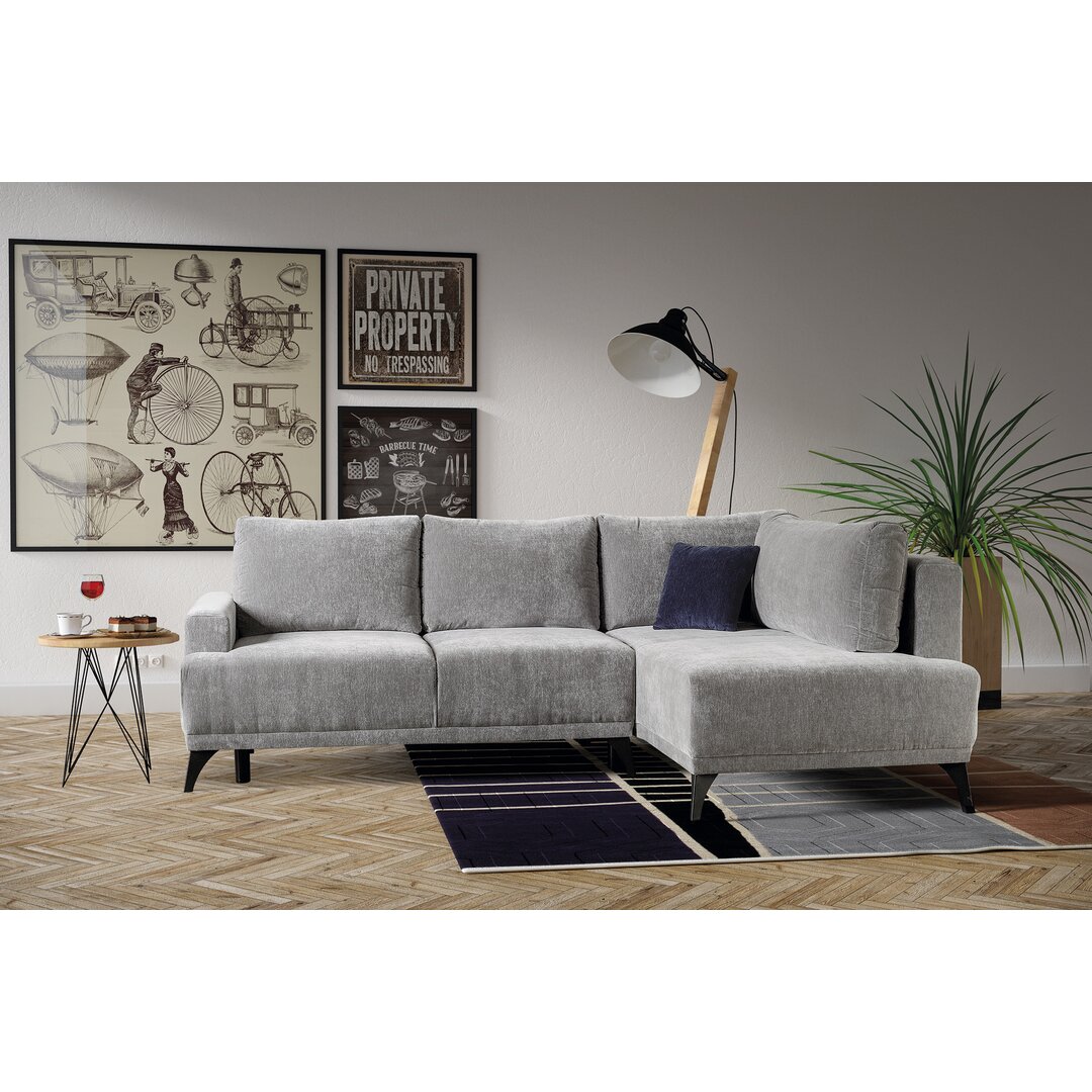 Die vier großen Rückenkissen und die komfortable Polsterung sorgen dafür, dass das Ecksofa Menifee bequem ist. Es kann auch in ein Bett umgewandelt werden. Außerdem bietet es viel Stauraum für Bettwäsche und so weiter. Corrigan Studio Ausrichtung: Rechts ausgerichtet
