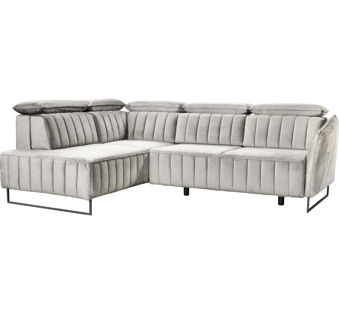 Das Ecksofa ist ein komfortables und modernes Ecksofa, das sehr hochwertig verarbeitet wurde. Dank der Doppelfederung ist das Sofa sehr bequem und durch die Schlaffunktion und den Bettkasten ist das Sofa super praktisch. Um einen noch besseren Sitzkomfort zu erreichen wurden bei dem Ecksofa drei verstellbare Kopfstützen verwendet und der kubische Metallrahmen verleiht dem Sofa Eleganz die charakteristischen Nähte auf der Vorder- und Rückseite wiederum tragen zu einem einzigartigen Stil bei. 17 Stories Polsterfarbe: Grau, Ausrichtung: Links