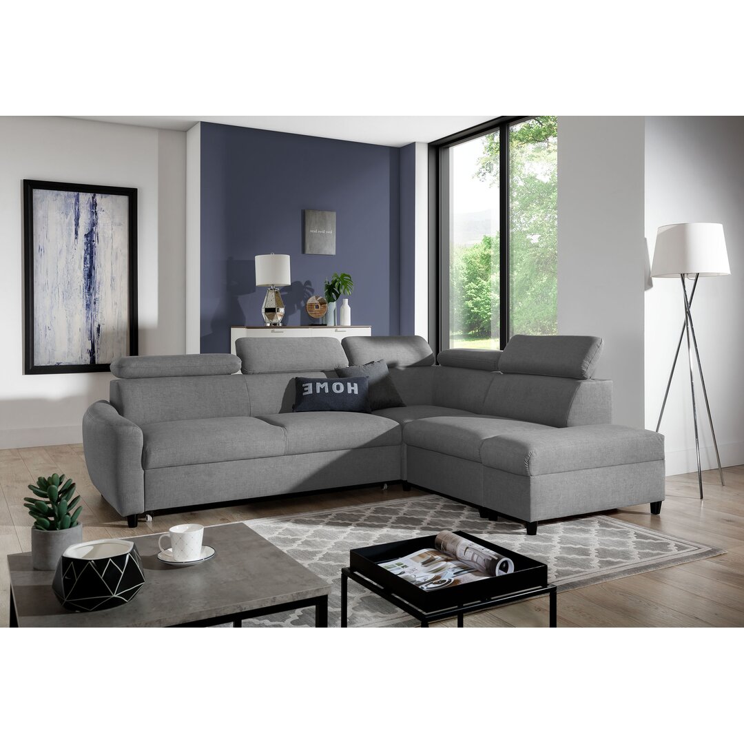 Kopfstützen können in 5 unterschiedliche Postionen verstellt werden Insgesamt 2 Bettschubladen – im Einsitzer und im Hocker, die sich dank Federmechanismus leicht öffnen bzw. schließen lassen Nosak-Aufhängung Brayden Studio Ausrichtung: Rechts ausgerichtet, Polsterfarbe: Grau
