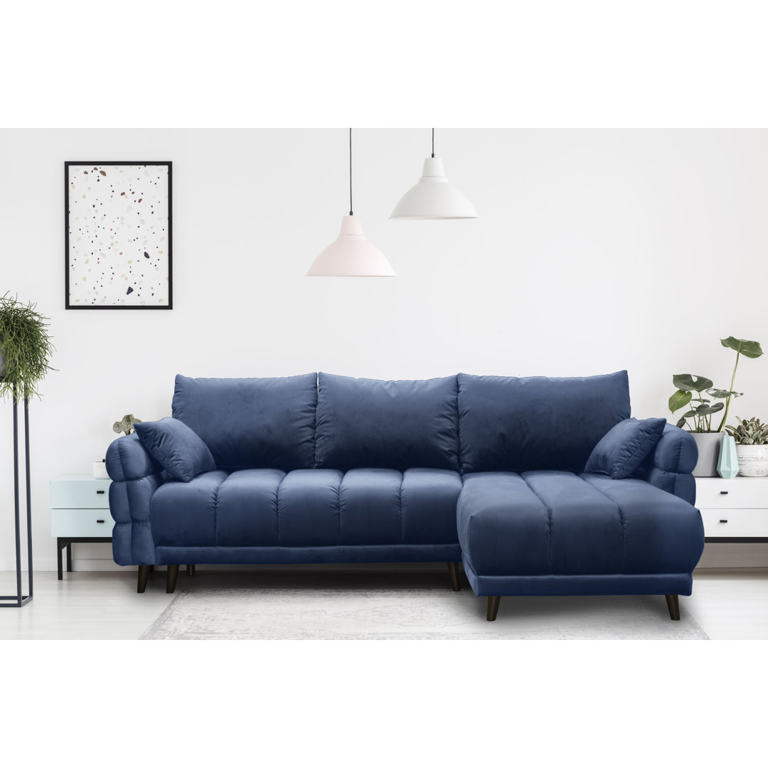 Dieses hochwertige Ecksofa besticht durch sein attraktives Design und seine topmoderne Farbgebung. ScanMod Design Polsterfarbe: Blau, Orientierung: Rechte Seite