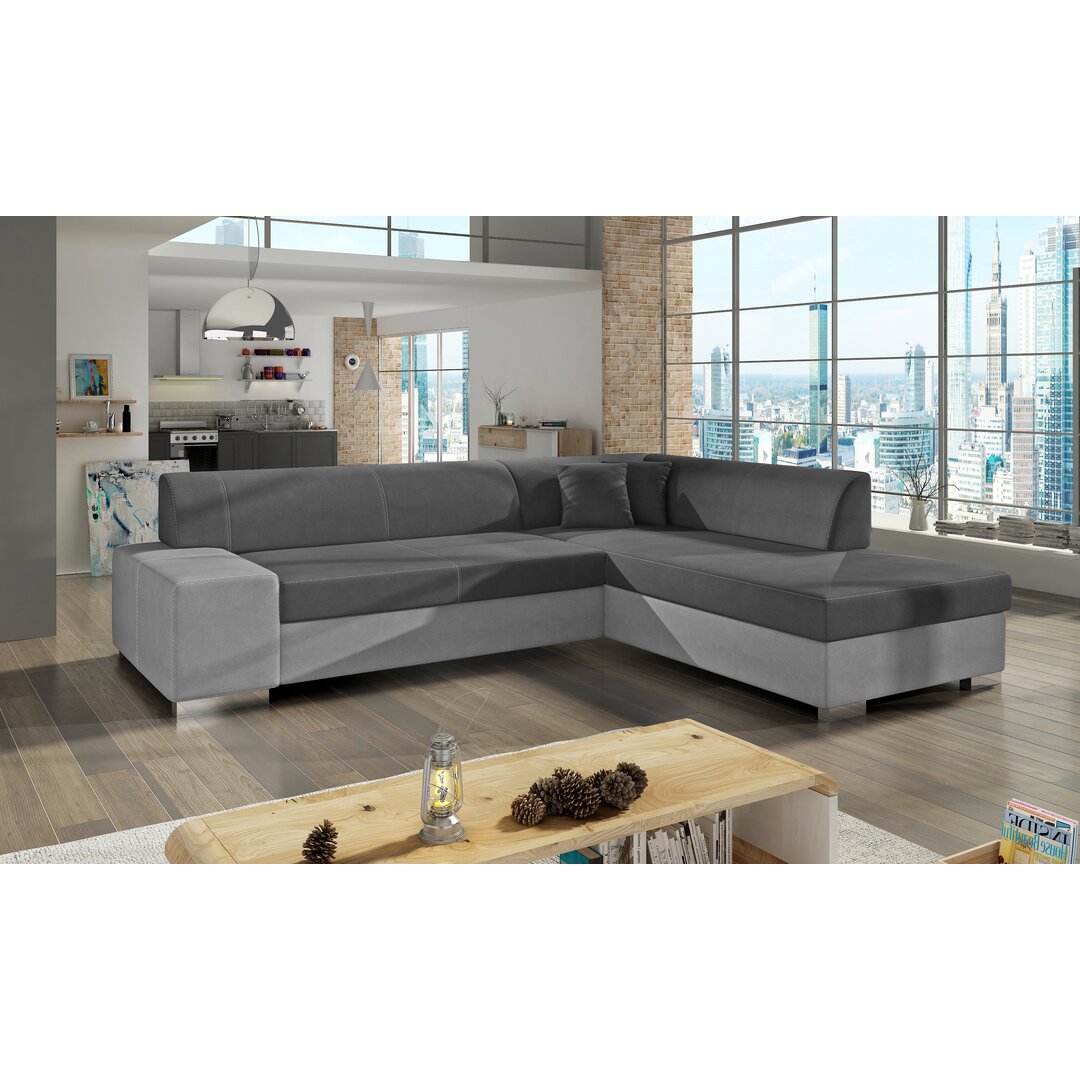 Dieses Ecksofa mit Bettfunktion ist eine bequeme und praktische Bereicherung für dein Zuhause. ModernMoments Polsterfarbe: Dunkelgrau/Grau, Ausrichtung: Rechts ausgerichtet