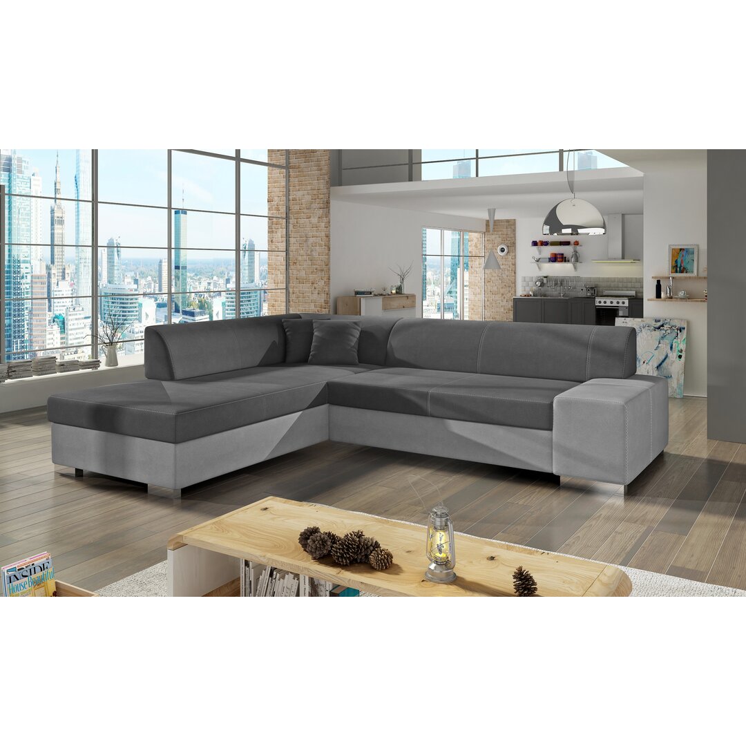 Dieses Ecksofa mit Bettfunktion ist eine bequeme und praktische Bereicherung für dein Zuhause. ModernMoments Polsterfarbe: Dunkelgrau/Grau, Ausrichtung: Links ausgerichtet