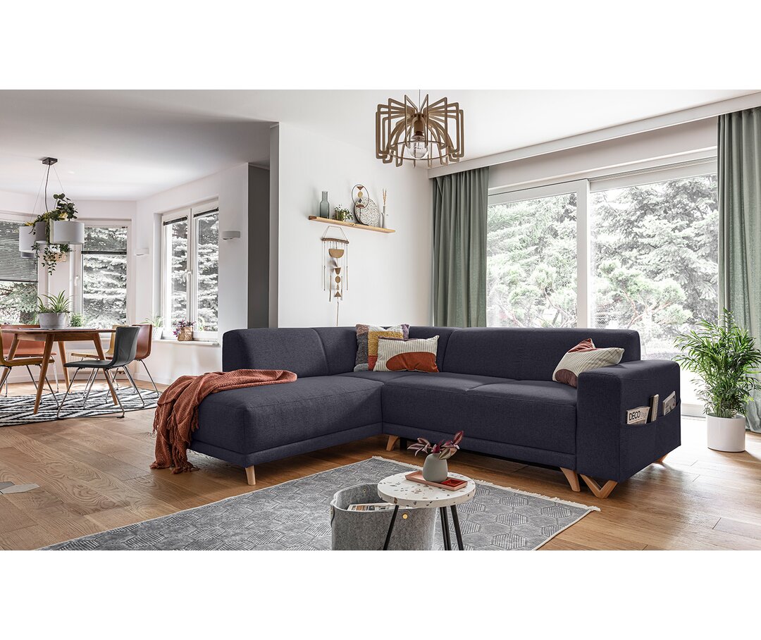 Sag hallo zum Ecksofa Classy Sophie mit Bettfunktion. Es bietet bequem Platz für mehr als fünf Personen und du kannst es ganz einfach in ein Bett umwandeln. Der Stoff in Leinenoptik und die massiven Holzbeine verleihen ihm eine naturbelassene Optik. Da es von allen Seiten vollständig bezogen ist, kannst du dieses Sofa auch in der Mitte eines Raumes aufstellen. Es hat eine praktische Seitentasche und bietet Stauraum für Decken und andere Dinge. MiuForm Polsterfarbe: Anthrazit, Ausrichtung: Links ausgerichtet