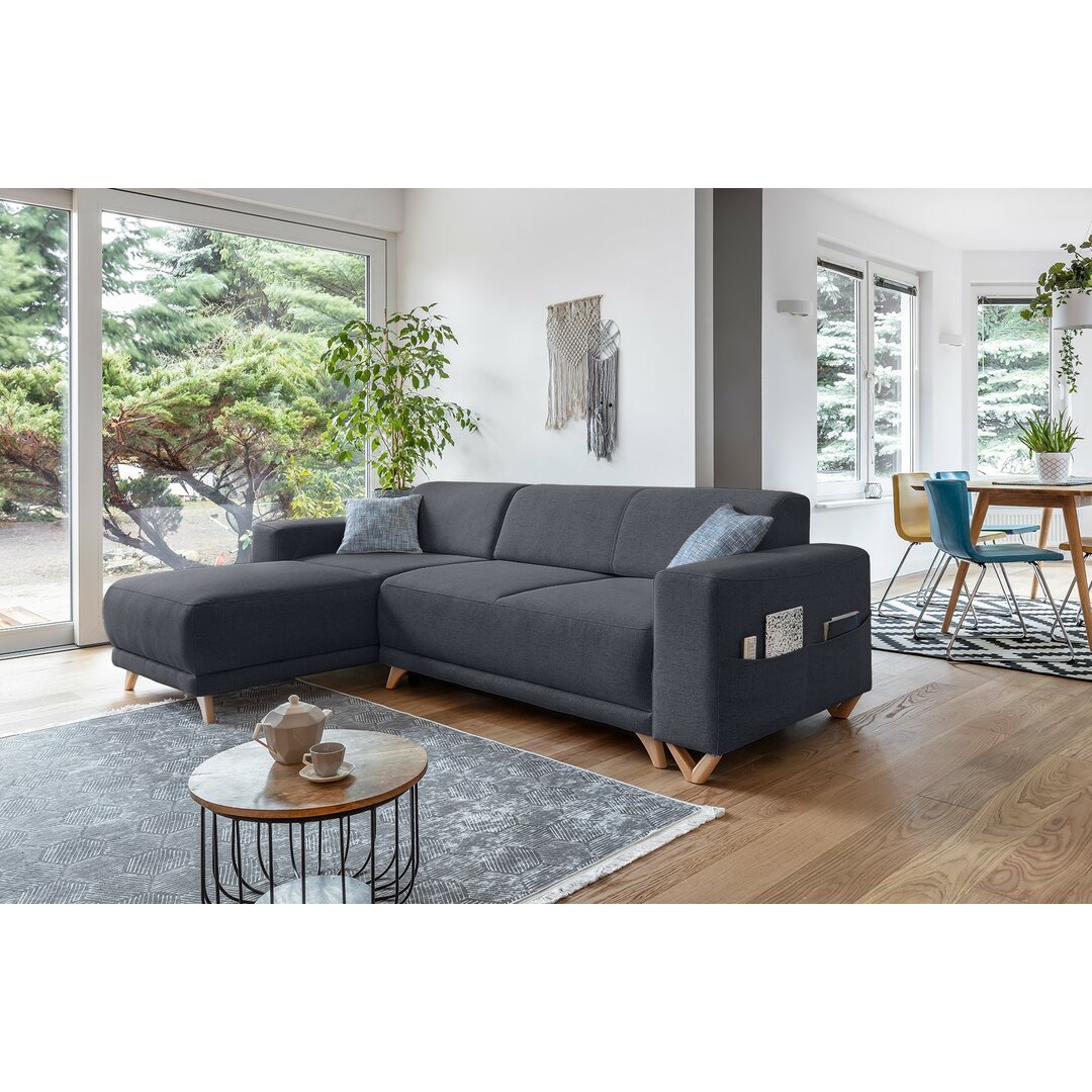 Dieses gemütliche Ecksofa mit Schlafsofa-Funktion macht in jedem Raum eine gute Figur, egal wie du ihn einrichtest. Es wurde nachhaltig hergestellt und hat mit seinem Stoff in Leinenoptik ein sehr natürliches Aussehen. Da es auf allen Seiten vollständig bezogen ist, kannst du dieses Sofa auch in der Mitte eines Raumes aufstellen. Es hat eine praktische Seitentasche und bietet Stauraum für Decken und andere Dinge. MiuForm Polsterfarbe: Anthrazit