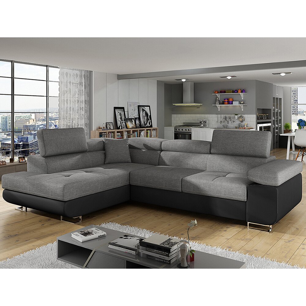 3 verstellbare Kopfstützen Hashtag Home Polsterfarbe: Grau/ Schwarz, Ausrichtung: Links ausgerichtet