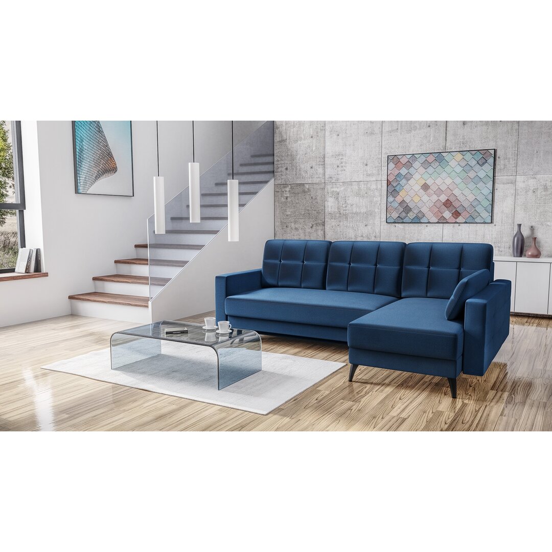 Dieses elegante Ecksofa lässt sich leicht in ein Bett umwandeln und bietet viel Stauraum. Die Wellenfedern sorgen für angenehmen Sitzkomfort. Das Sofa ist in vielen verschiedenen Farben erhältlich. Etta Avenue Ausrichtung: Rechts ausgerichtet, Polsterfarbe: Blau