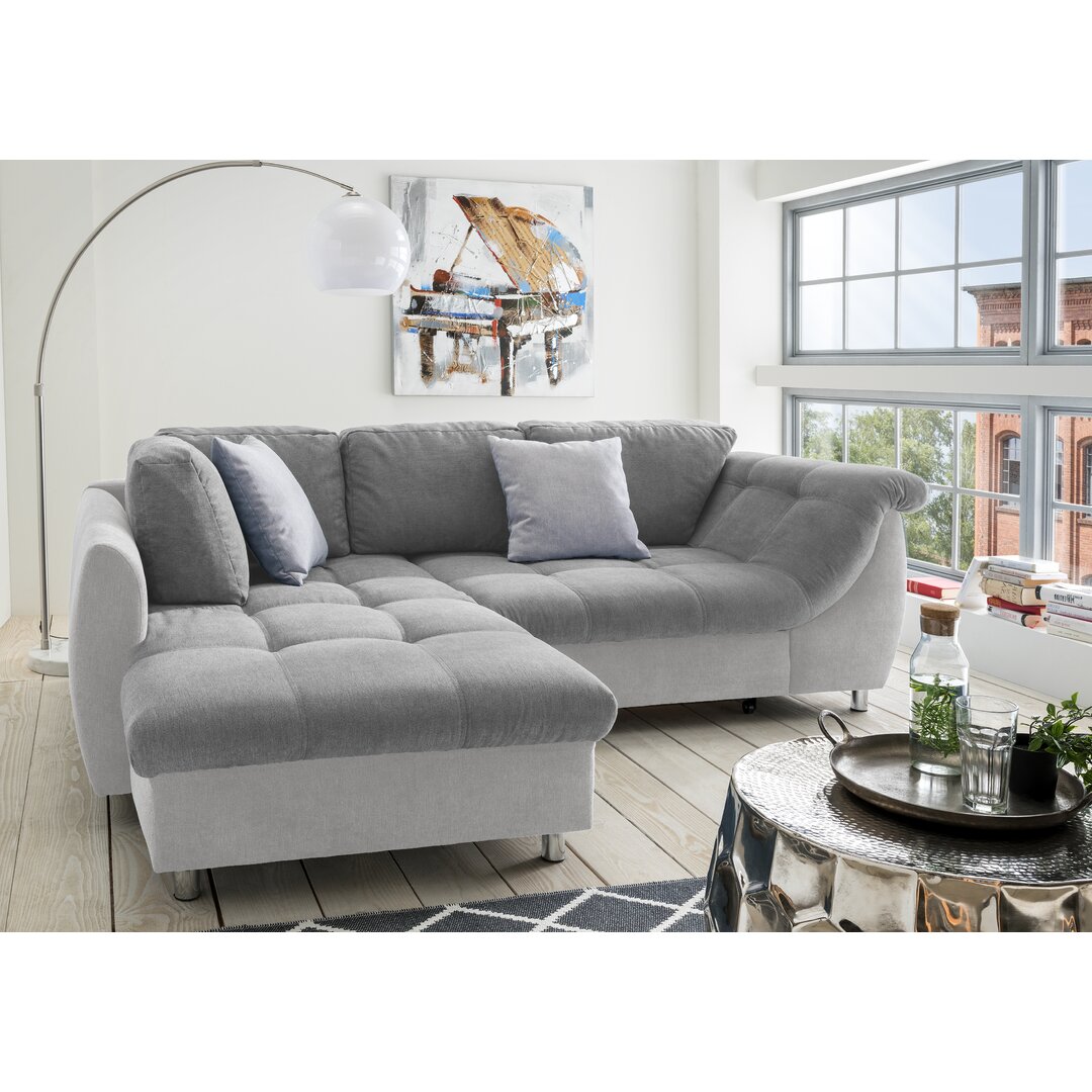 Elegant, modern und herrlich weich: Das Ecksofa Cornwall mit seiner geschwungenen Form bringt einen modernen Look mit Wohlfühlfaktor in dein Zuhause. Auf dem Sofa können fünf Personen bequem sitzen und nachts verwandelt es sich in ein bequemes Gästebett für zwei Personen. Hashtag Home Ausrichtung: Links ausgerichtet, Polsterfarbe: Silber/grau
