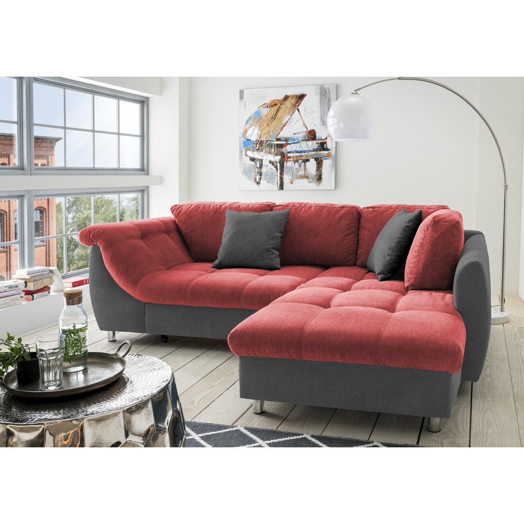 Elegant, modern und herrlich weich: Das Ecksofa Cornwall mit seiner geschwungenen Form bringt einen modernen Look mit Wohlfühlfaktor in dein Zuhause. Auf dem Sofa können fünf Personen bequem sitzen und nachts verwandelt es sich in ein bequemes Gästebett für zwei Personen. Hashtag Home Polsterfarbe: Anthrazitgrau/Rot, Ausrichtung: Rechts ausgerichtet