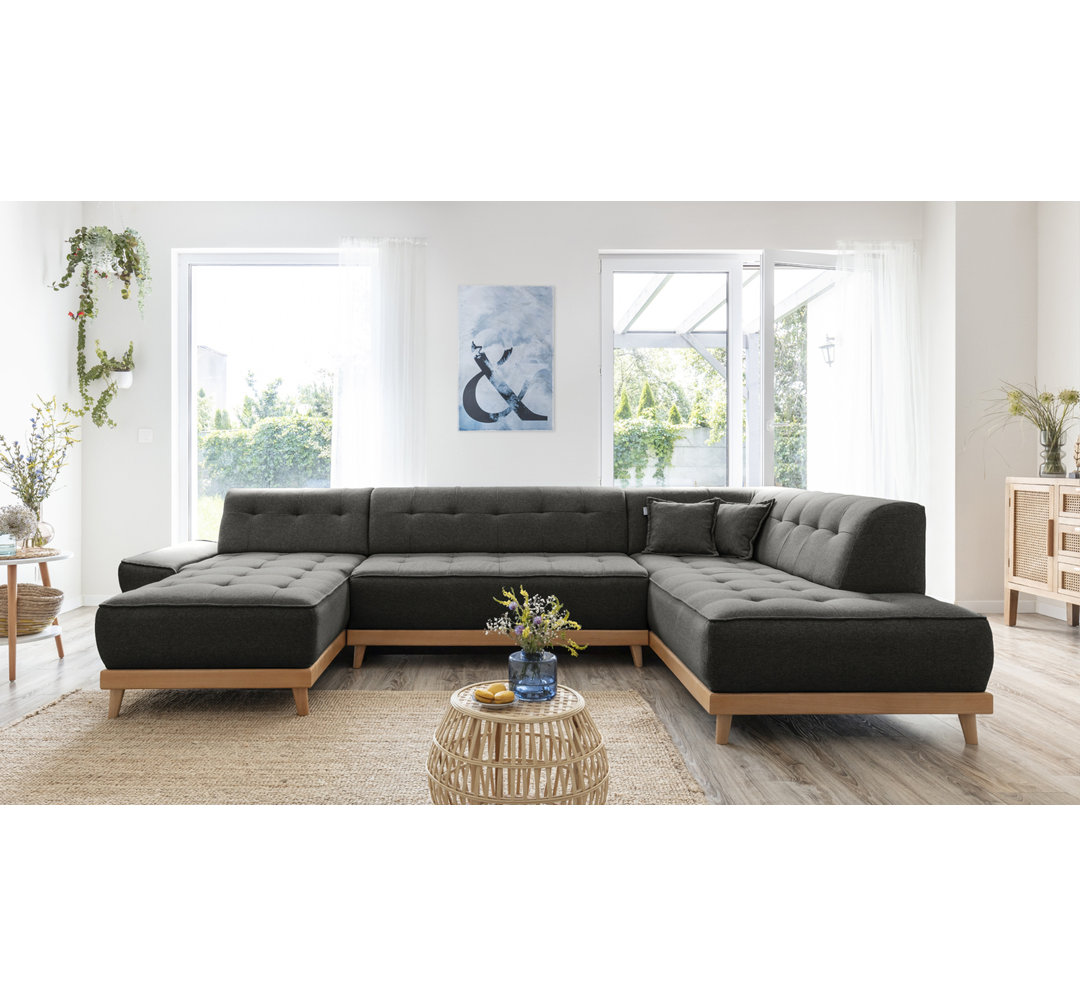 Modernes Design im skandinavischen Stil, das Leichtigkeit und Eleganz in den Innenraum bringt. Der Sitz und die Armlehnen mit ihren exquisiten Proportionen wurden mit der Originalverkleidung versehen. Die klassische Form der Möbel wird durch Steppungen und deutlich betonte Elemente aus Holz aufgebrochen. Inklusive zwei Zierkissen. Die perfekte Ergänzung zur Dazzling Daisy Kollektion ist ein Pouffe, der als Tisch oder Fußstütze verwendet werden kann. MiuForm Polsterfarbe: Anthrazit, Ausrichtung: Ausrichtung Rechts