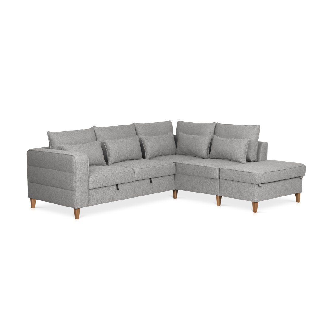 Elegantes Ecksofa mit hohem Komfort und vielen Funktionen: sehr einfach in ein Bett zu verwandeln, sehr geräumiger Stauraum unter dem Pouf, lockere Kissen. Dieses Sofa ist einfach ein Muss. Die hohen Holzbeine verleihen diesem Modell, das in verschiedenen Stoffen und Farben erhältlich ist, ein elegantes Aussehen. Die Maße sind wie folgt: 2,51 x 2,33 x 0,87 m. Das Sofa wird in 3 Teilen zerlegt geliefert: Für den Zusammenbau werden zwei Personen benötigt. Dieses Sofa ist nicht wendbar, also entscheide vorher, ob du es rechts- oder linksseitig ausgerichtet haben möchtest. Ebern Designs Beinfarbe: Hellbraun, Polsterfarbe: Grau, Ausrichtung: Rechts ausgerichtet