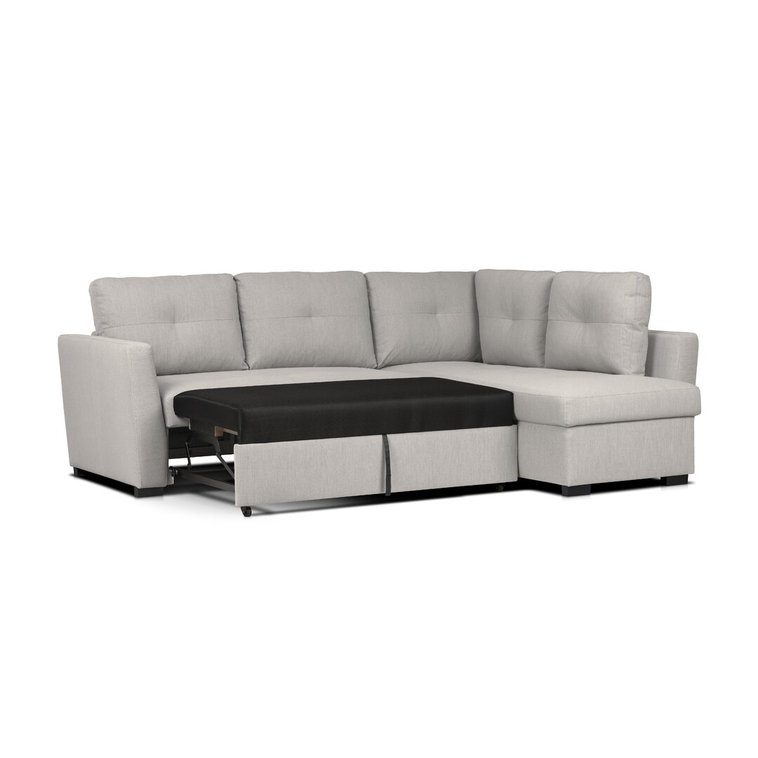 Einfaches Design für dieses Ecksofa, das sich ganz leicht in ein bequemes Bett verwandeln lässt. Der Schaumstoff, mit dem die Sitze gepolstert sind, bietet hohen Komfort. Erhältlich in verschiedenen Stoffen und Farben, passend zu deinem persönlichen Geschmack. Die Kissen sind abnehmbar. Maße: 2,39 x 1,87 x 0,96 m. Das Sofa wird zerlegt und in 2 Teilen geliefert: Für die Montage werden zwei Personen benötigt. Ebern Designs Polsterfarbe: Grau/Beige