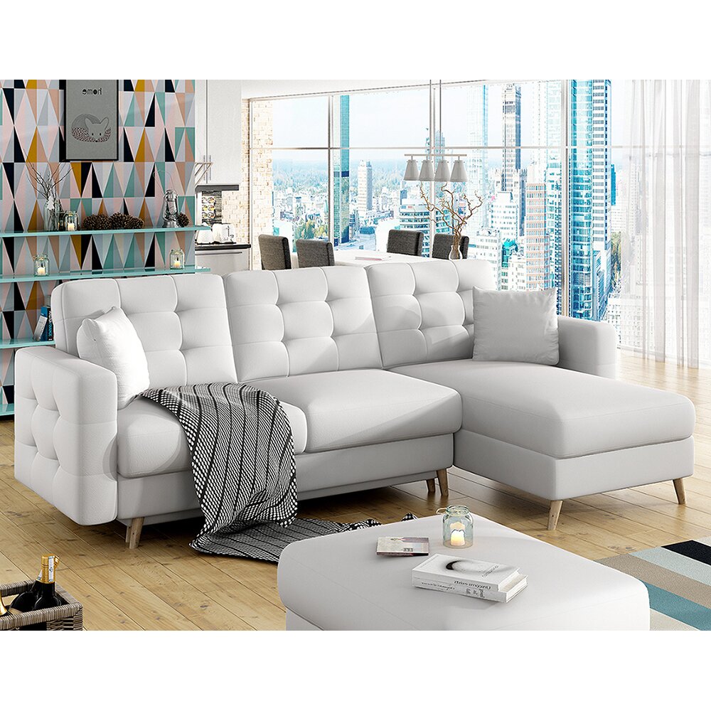 Mit 3 Rücken- und 2 Zierkissen Mit Wellenfederung Metro Lane Polsterfarbe: Weiß