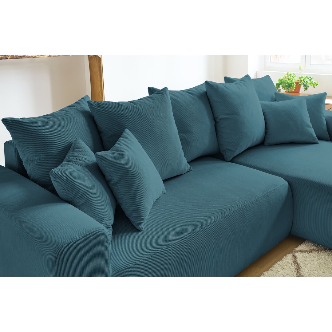 Mit seinem Charme und seiner Eleganz wird dieses Ecksofa dein Wohnzimmer noch geselliger machen. Das Sofa besteht aus einem sehr weichen Stoff mit Kord-Effekt und wird zum Star deines Wohnzimmers. Das sehr bequeme und funktionale Sofa ist auch umwandelbar, damit du deine Freunde unterbringen kannst. Das Sofa hat eine Aufbewahrungsbox, um Ordnung zu halten und deinen Platz zu optimieren. Es kommt auch mit einem Hocker. Bobochic Paris Polsterfarbe: Blau