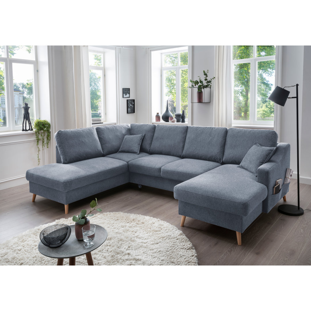 Liegefunktion inklusive Stellfläche: ca. 150 x 301 x 200 cm Liegefläche: ca. 260 x 127 cm WEllenunterfederung und Komfortschaum massive Holzfüße Zierkissen inklusive Staukasten unter der Recamieren Corrigan Studio Ausrichtung: Ausrichtung Links, Polsterfarbe: Blau