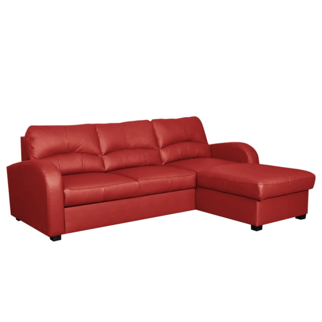 Dieses Ecksofa zeichnet sich durch seine Einzigartigkeit und seine schlichte Form aus, durch die es sich leicht in jede Inneneinrichtung einfügen lässt. Sein unbestreitbarer Vorteil ist die bequeme Schlaffunktion und der geräumige Bettzeugbehälter. Ebern Designs Ausrichtung: Rechts ausgerichtet, Polsterfarbe: Rot