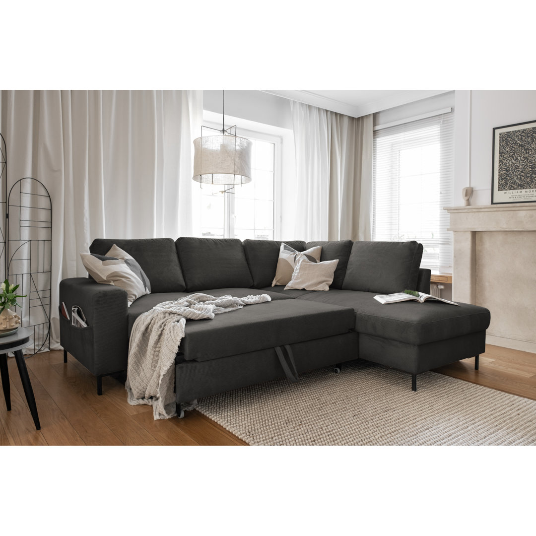 Mit der makellosen, modernen Form, kombiniert mit der nötigen Funktionalität, freuen wir uns, dir Angola zu präsentieren. Die Schlaffunktion, die Seitentasche für Kleinigkeiten gestalten dein Interieur nach deinen Bedürfnissen. Der weiche Stoff verleiht dem Sofa und auch die hohen, schwarzen, matten Füße unterstreichen den Loft-Stil der Kollektion. Bring mit Lofty Lilly Lofty Charakter in dein Interieur. MiuForm Polsterfarbe: Grau, Ausrichtung: Ausrichtung Rechts