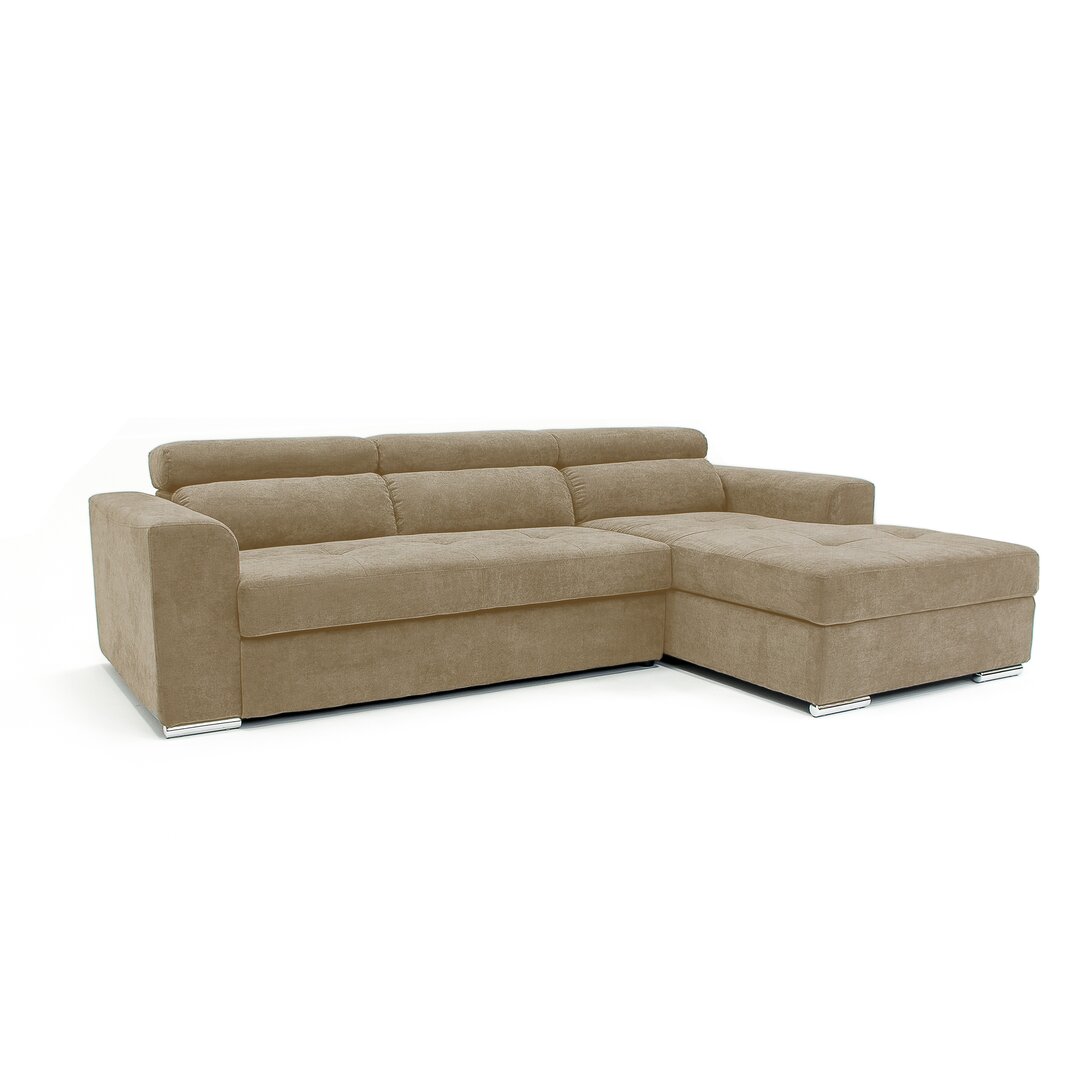 Dieses Ecksofa kommt mit einer breiten Chaiselongue und verstellbaren Kopfstützen. Es verfügt über einen Stauraum und eine Schlaffunktion. Brayden Studio Polsterfarbe: Creme