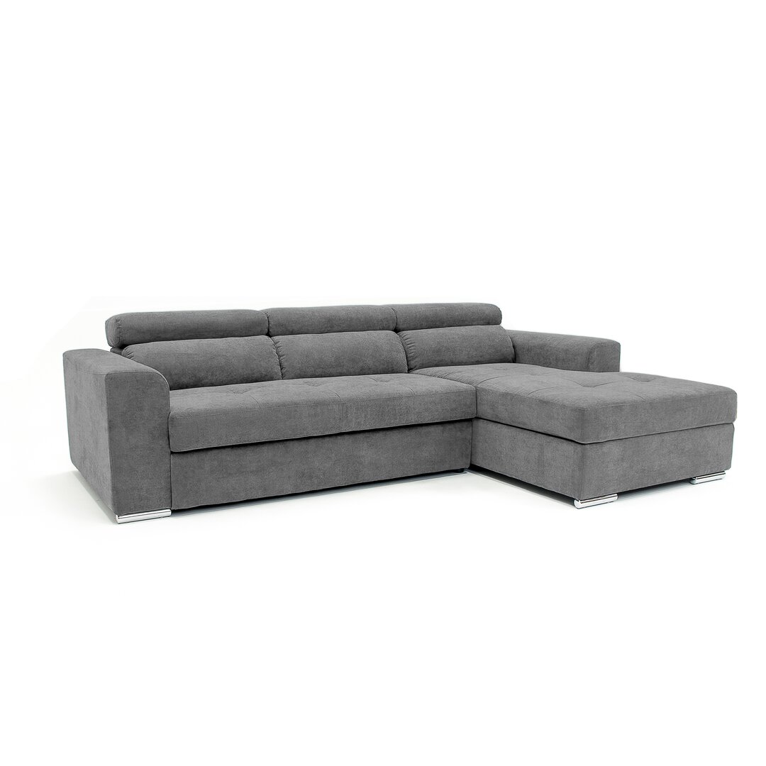 Dieses Ecksofa kommt mit einer breiten Chaiselongue und verstellbaren Kopfstützen. Es verfügt über einen Stauraum und eine Schlaffunktion. Brayden Studio Polsterfarbe: Grau