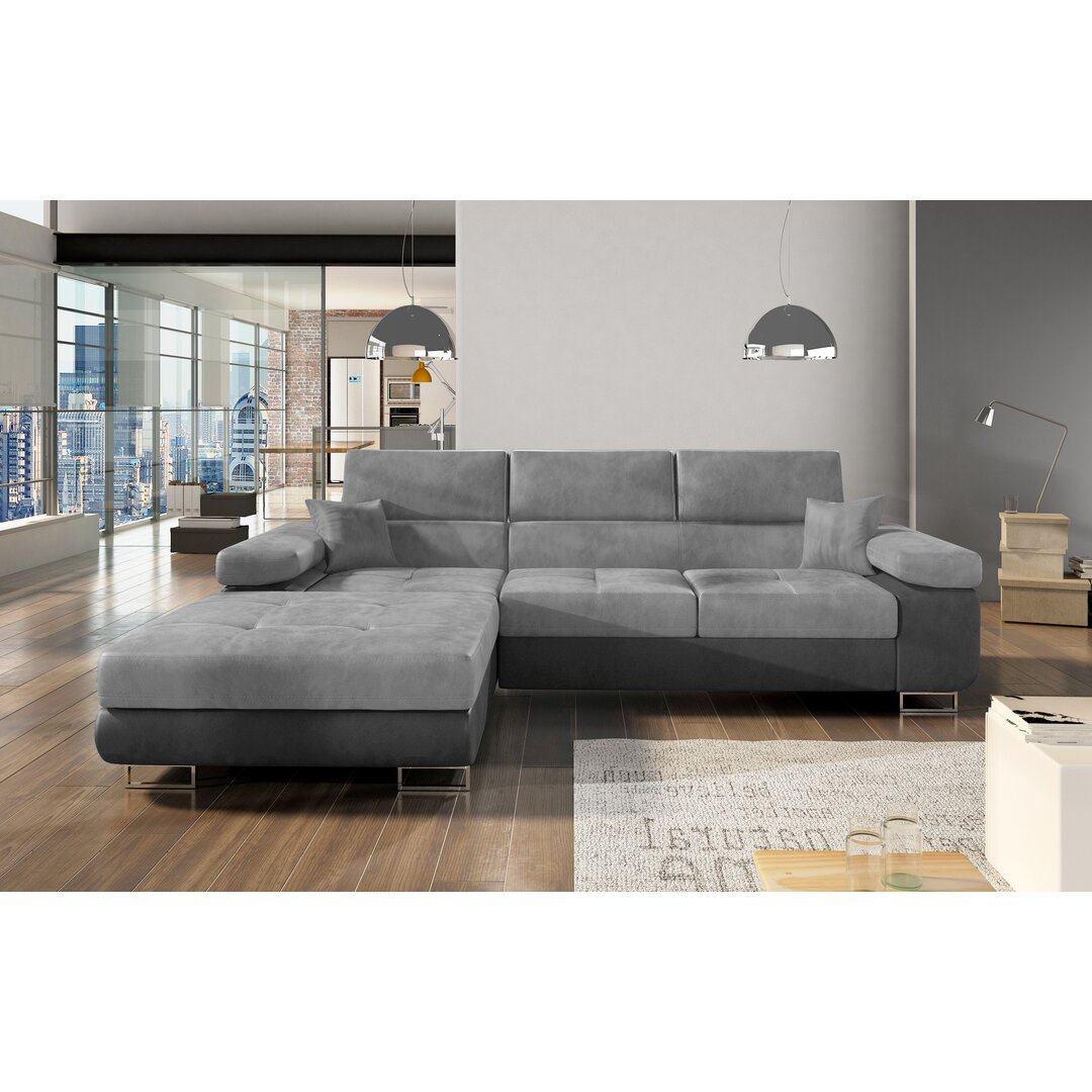 Dieses moderne Ecksofa mit Bettfunktion hat die perfekte Größe, um sich in nahezu jedes Wohnzimmer optimal einzufügen. ModernMoments Ausrichtung: Links ausgerichtet, Polsterfarbe: Hellgrau/Grau