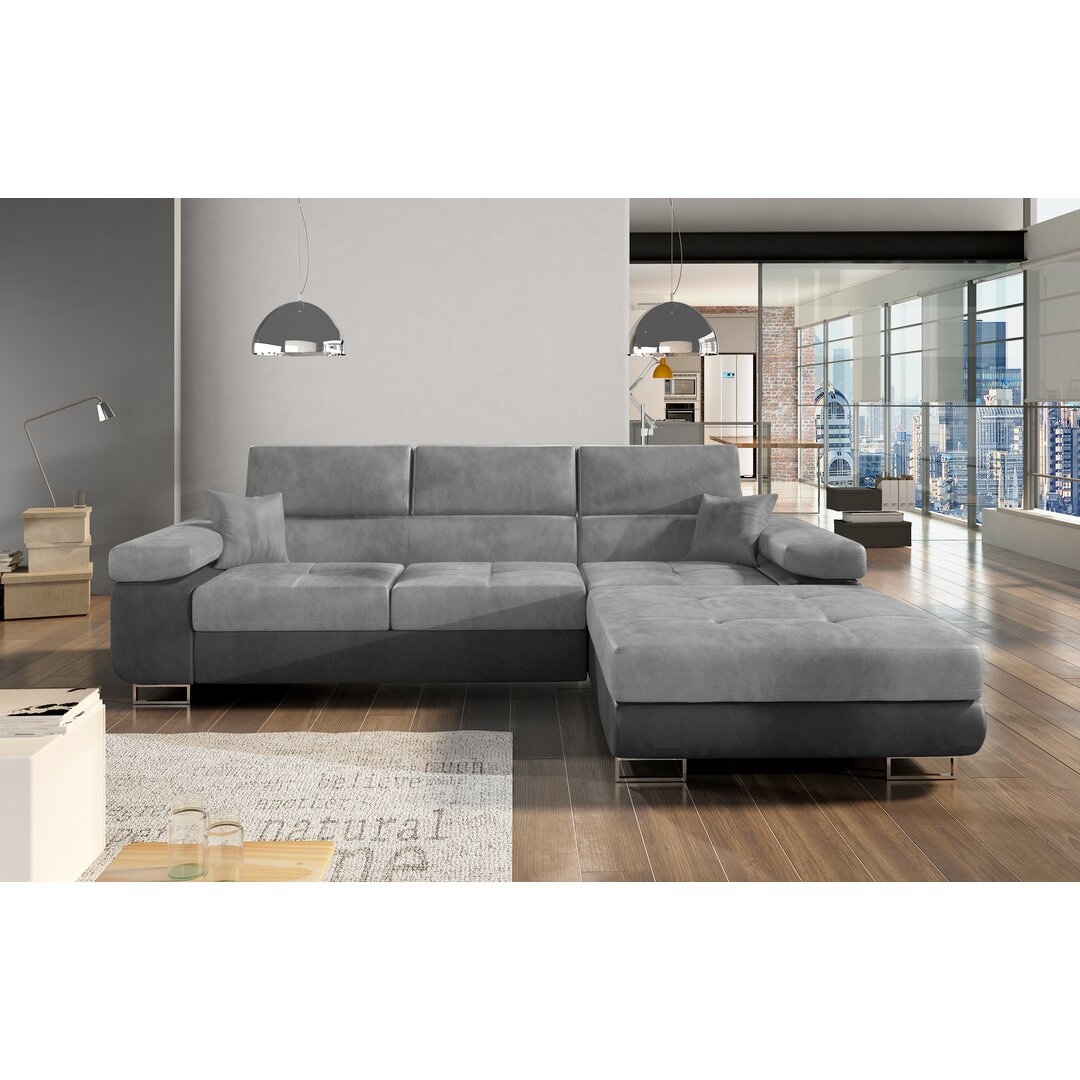 Dieses moderne Ecksofa mit Bettfunktion hat die perfekte Größe, um sich in nahezu jedes Wohnzimmer optimal einzufügen. ModernMoments Ausrichtung: Rechts ausgerichtet, Polsterfarbe: Hellgrau/Grau