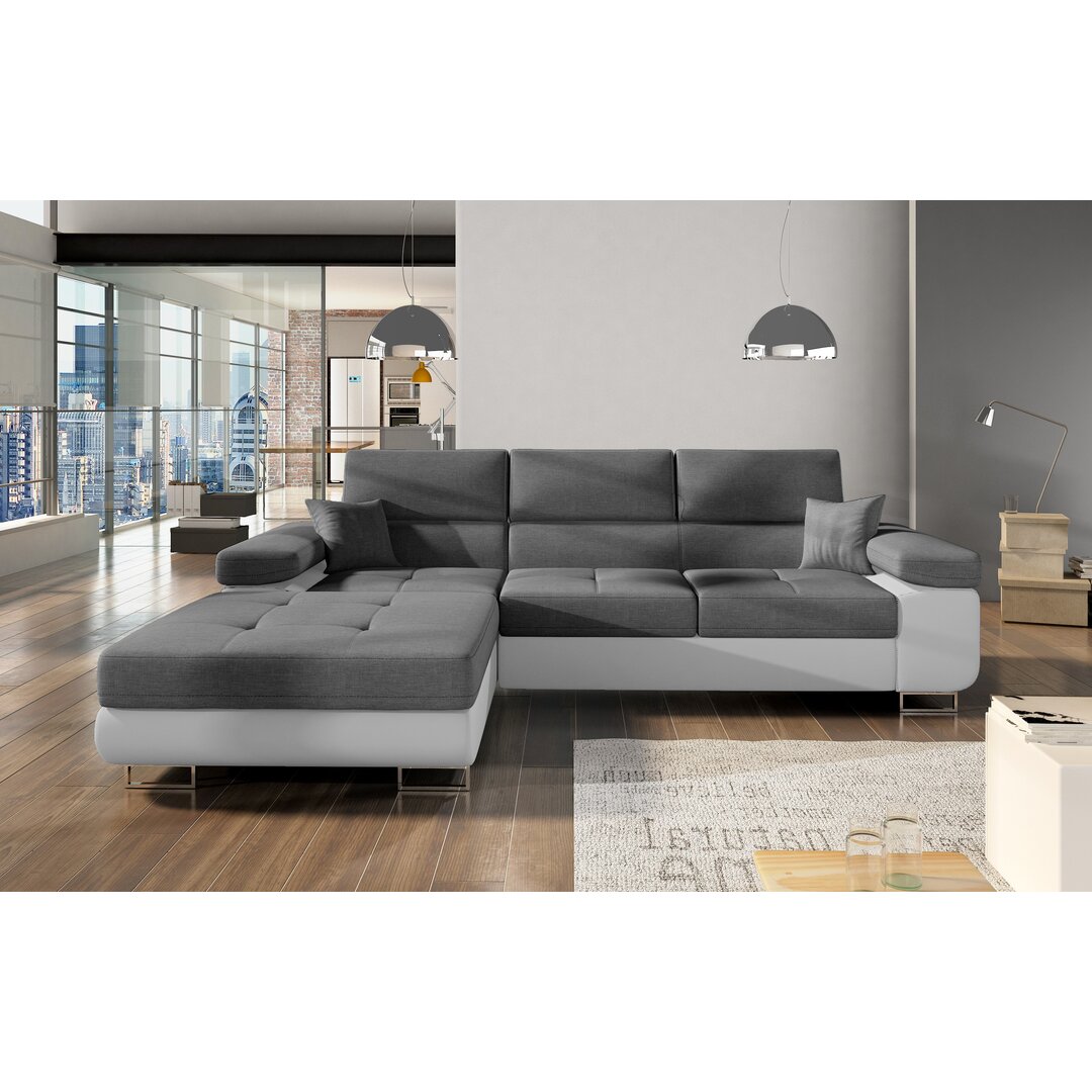 Dieses moderne Ecksofa mit Bettfunktion hat die perfekte Größe, um sich in nahezu jedes Wohnzimmer optimal einzufügen. ModernMoments Ausrichtung: Links ausgerichtet, Polsterfarbe: Grau und Weiß
