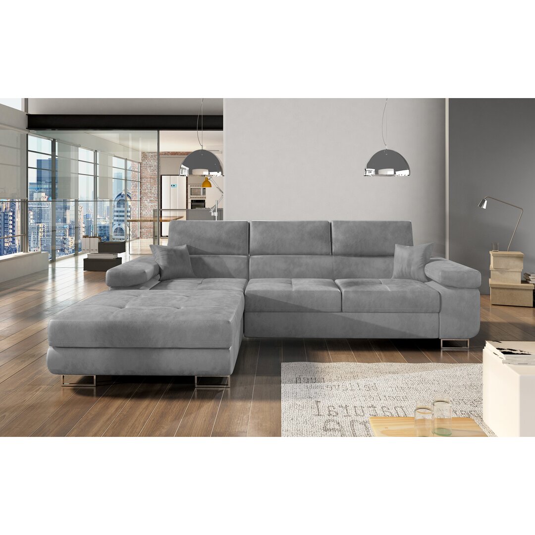 Dieses moderne Ecksofa mit Bettfunktion hat die perfekte Größe, um sich in nahezu jedes Wohnzimmer optimal einzufügen. ModernMoments Ausrichtung: Links ausgerichtet, Polsterfarbe: Grau