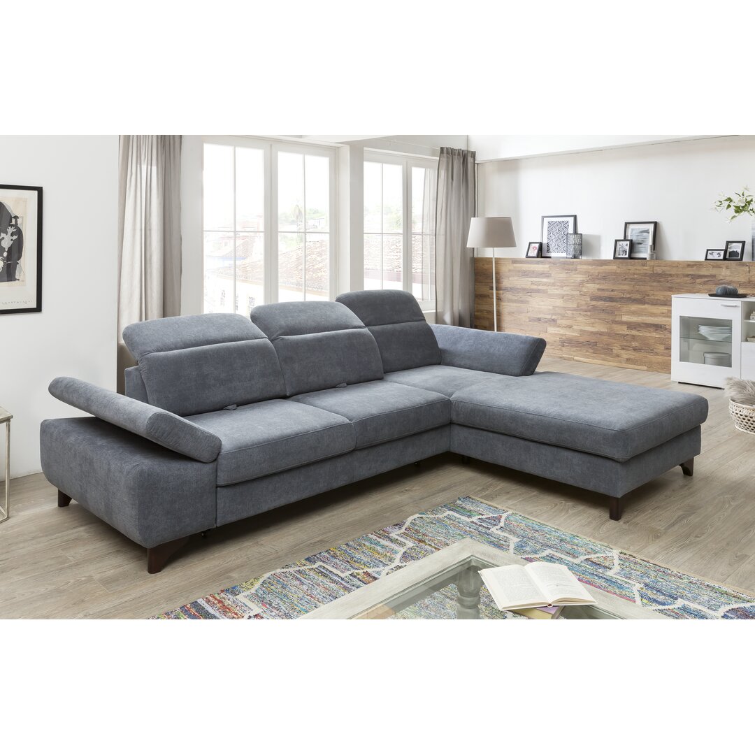 Ein zweiteiliges Ecksofa mit Armlehnen links und rechts, mit dreifach verstellbarer Kopfstütze, zweifach verstellbarer Sitztiefe, zweifach verstellbarer Armlehne und drei Lendenkissen Ebern Designs Ausrichtung: Rechtsseitiges Ecksofa, Funktion: Kann in ein Bett umgewandelt werden, Polsterfarbe: Grau