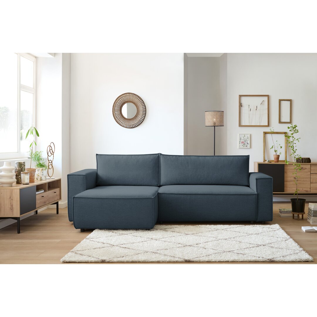 Mit seinem Charme und seiner Eleganz wird dieses Ecksofa die Geselligkeit deines Wohnzimmers erhöhen. Das Sofa besteht aus einem sehr weichen Stoff und wird zum Flaggschiff deines Wohnbereiches. Das sehr bequeme und funktionale Sofa ist auch umwandelbar, damit du deine Freunde unterbringen kannst. Das Sofa hat eine Aufbewahrungsbox, um Ordnung zu halten und deinen Platz zu optimieren. Bobochic Paris Polsterfarbe: Blau