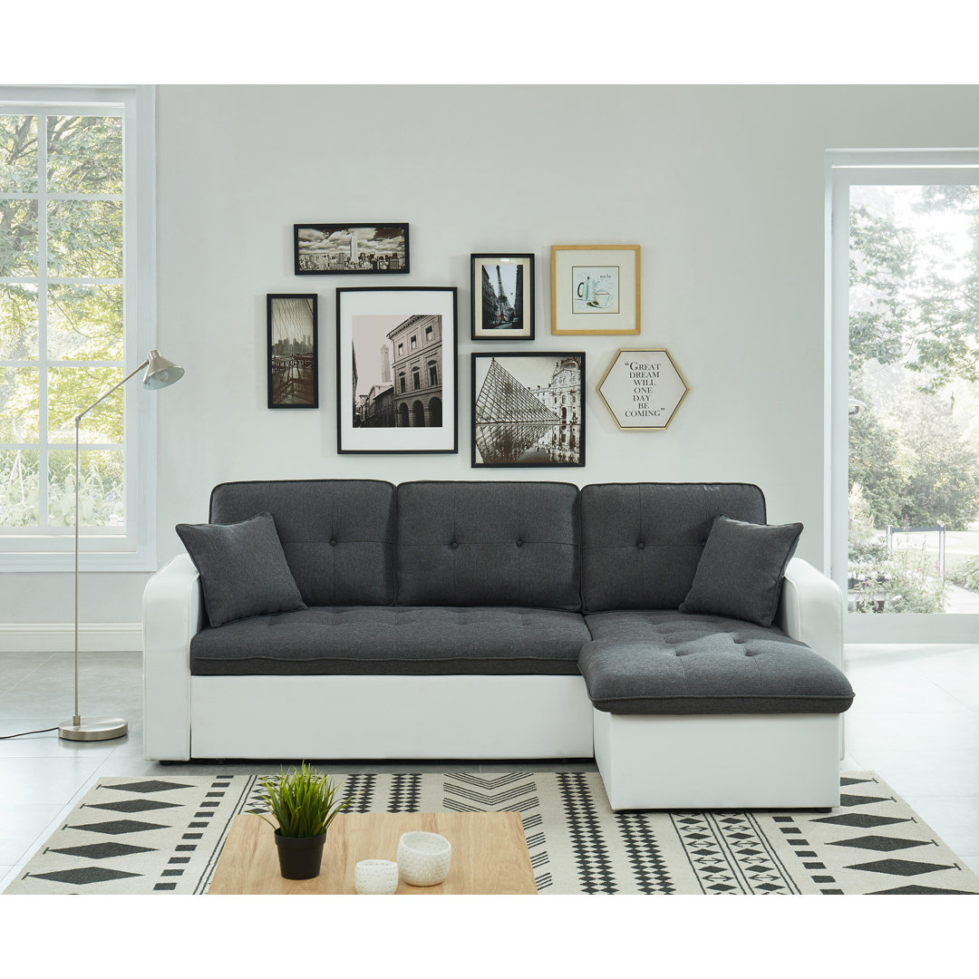 Umwandelbares und wendbares 4-Sitzer-Stoff-Ecksofa. Produktabmessungen: 221 x 147 x 87 cm. Maße des Bettes: 130 x 190 cm. 17 Stories Polsterfarbe: Grau/Weiß