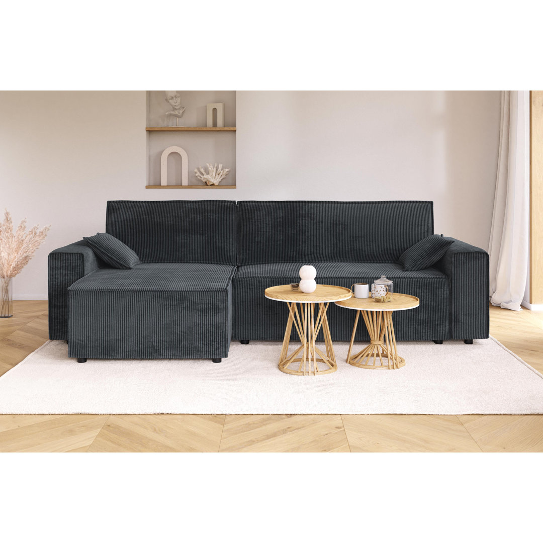 4-sitziges umwandelbares Ecksofa mit Wendeecke und Staufach aus Cord. Maße des Sofas: 273 x 152 x 83 cm. Maße des Bettes: 160 x 230 cm 17 Stories Polsterfarbe: Anthrazit
