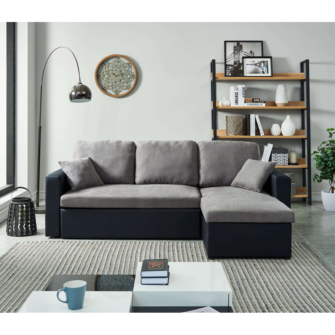 4-sitziges umbaubares Ecksofa mit Wendeecke und Staukasten. Maße des Sofas: 221 x 147 x 85 cm. Maße des Bettes: 130 x 190 cm 17 Stories Polsterfarbe: Grau/Schwarz