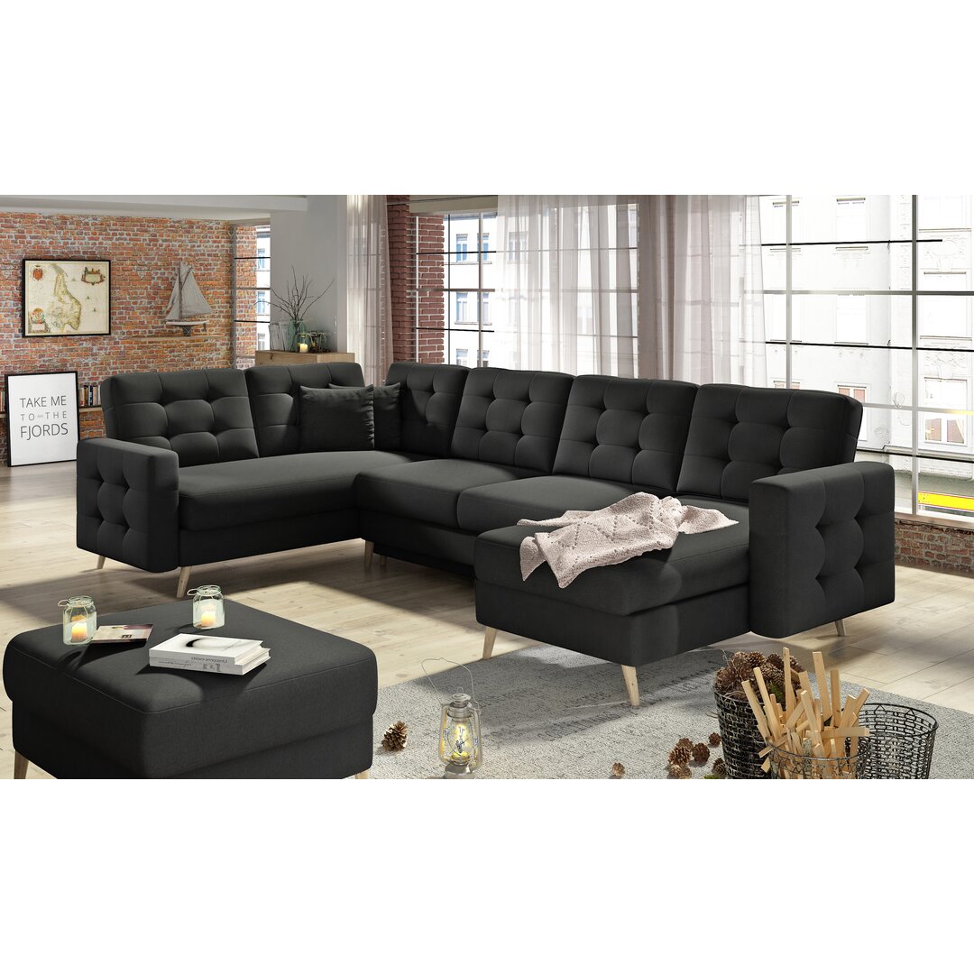 Das einzigartige Design, das perfekt zu skandinavischen, New Yorker, eklektischen und Retro-Einrichtungen passt, ist nicht der einzige Vorteil des Ecksofas. Abgesehen von der Tatsache, dass die Möbel außergewöhnlich stilvoll sind, sind sie auch funktional. Neben einem großen Platz zum Ausruhen während des Tages hat das Ecksofa eine zusätzliche Schlaffunktion und einen geräumigen Stauraum für Bettzeug. ScanMod Design Polsterfarbe: anthrazit
