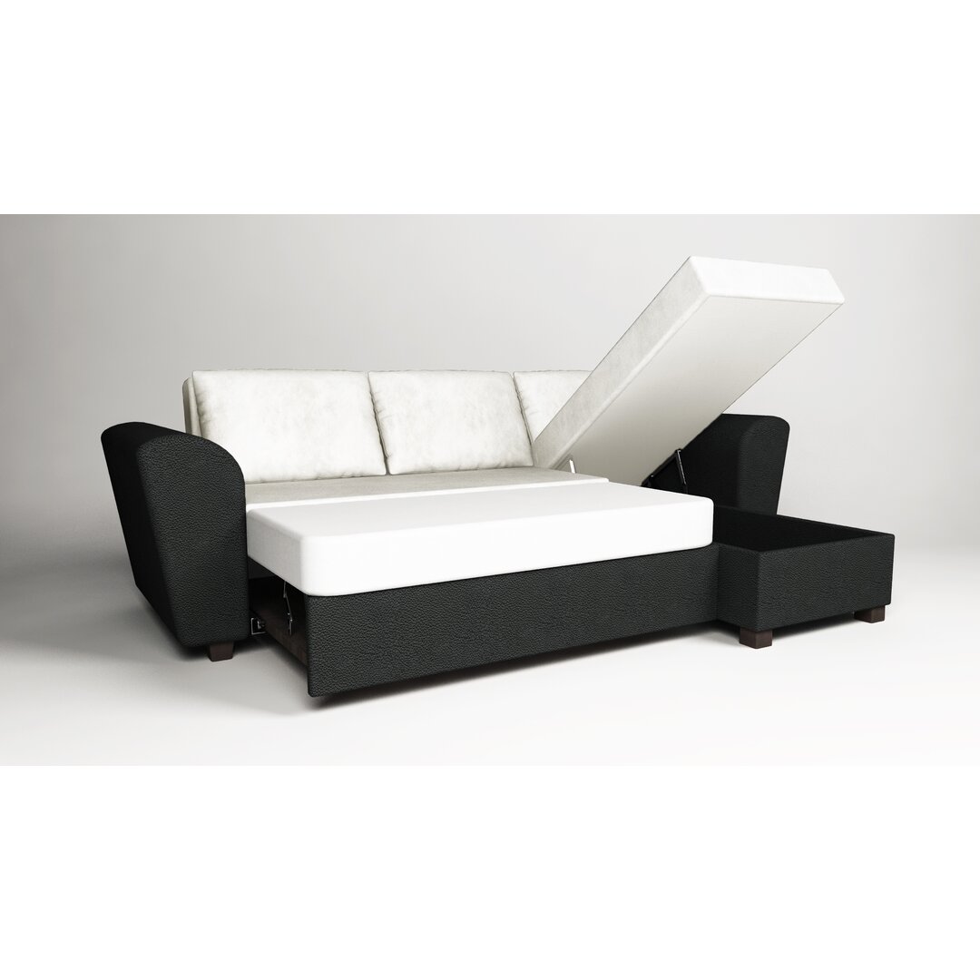 Dieses Ecksofa mit Polsterkissen lädt dazu ein, die Füße hoch zu legen und sich zu entspannen. Es ist somit der ideale Partner für den modernen Alltag. Ebern Designs Ausrichtung: Rechts ausgerichtet, Polsterfarbe: Weiß/Schwarz