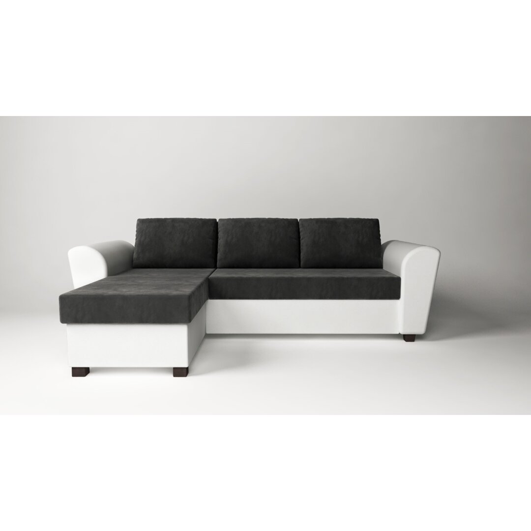 Dieses Ecksofa mit Polsterkissen lädt dazu ein, die Füße hoch zu legen und sich zu entspannen. Es ist somit der ideale Partner für den modernen Alltag. Ebern Designs Ausrichtung: Links ausgerichtet, Polsterfarbe: Dunkelgrau/Weiß