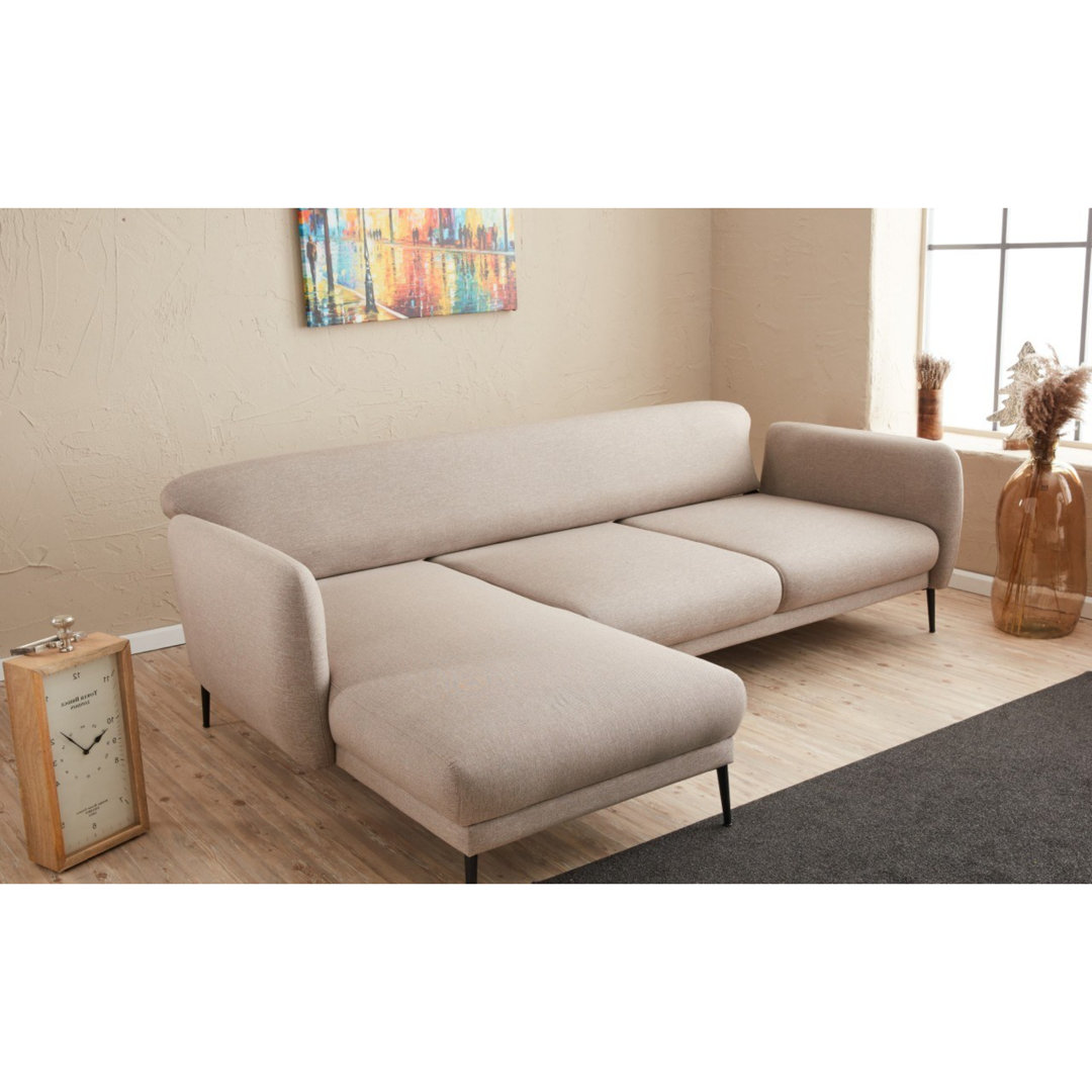 Dieses eindrucksvolle Ecksofa mit Bettfunktion ist die perfekte Ergänzung für jedes moderne Zuhause. Mit seinem schlanken Design und seiner vielseitigen Funktionalität beeindruckt dieses Möbelstück sicherlich. Hoher Komfort und Qualität Dieses Schlafsofa besteht aus einem Gestell aus 100% Buche und ist für eine lange Lebensdauer ausgelegt. Der 28 DNS-Schaumstoff bietet außergewöhnlichen Komfort und ist der ideale Ort, um nach einem langen Tag zu entspannen. Der Stoff, eine Mischung aus Polyester und Leinen, verleiht einen Hauch von Luxus und Haltbarkeit. Stilvoll und vielseitig Mit seiner unifarbenen Gestaltung fügt sich das Ecksofa mühelos in jeden Einrichtungsstil ein. Ob du eine moderne, industrielle oder skandinavische Optik bevorzugst, dieses Stück passt perfekt dazu. Die klaren Linien und das schlanke Design verleihen jedem Raum eine raffinierte Atmosphäre. Verwandelt sich in ein gemütliches Bett Du brauchst einen zusätzlichen Schlafplatz für Gäste? Kein Problem. Dieses Sofa lässt sich ganz einfach in ein bequemes Bett mit den Maßen 240 x 90 cm umwandeln. Verabschiede dich von unbequemen Luftmatratzen und genieße einen ruhigen Schlaf. Einfacher Aufbau und Wartung Mit der detaillierten Anleitung ist der Aufbau ein Kinderspiel. Außerdem sorgen die antibakteriellen Eigenschaften dieses Schlafsofas für eine saubere und hygienische Umgebung. Modernisiere deinen Wohnraum mit diesem Ecksofa und erlebe die ideale Mischung aus Stil, Komfort und Funktionalität. Technische Details: Gestell: 100% Buche; Schaumstoff: 28 DNS-Schaumstoff für die Sitzfläche; Beine: Hart; Aufbau erforderlich; 265 cm B x 80 cm H x 163 cm T; Sitzflächenhöhe: 42 cm H x 65 cm T x 240 cm B; Rückenlehnenhöhe: 40 cm, Beinhöhe: 17 cm; Armlehnenhöhe: 74 cm, Armlehnenstärke: 15 cm; Maße der Liegefläche: 240 x 90 cm. Wade Logan Ausrichtung: Links ausgerichtet, Beinfarbe: Creme, Polsterfarbe: Creme