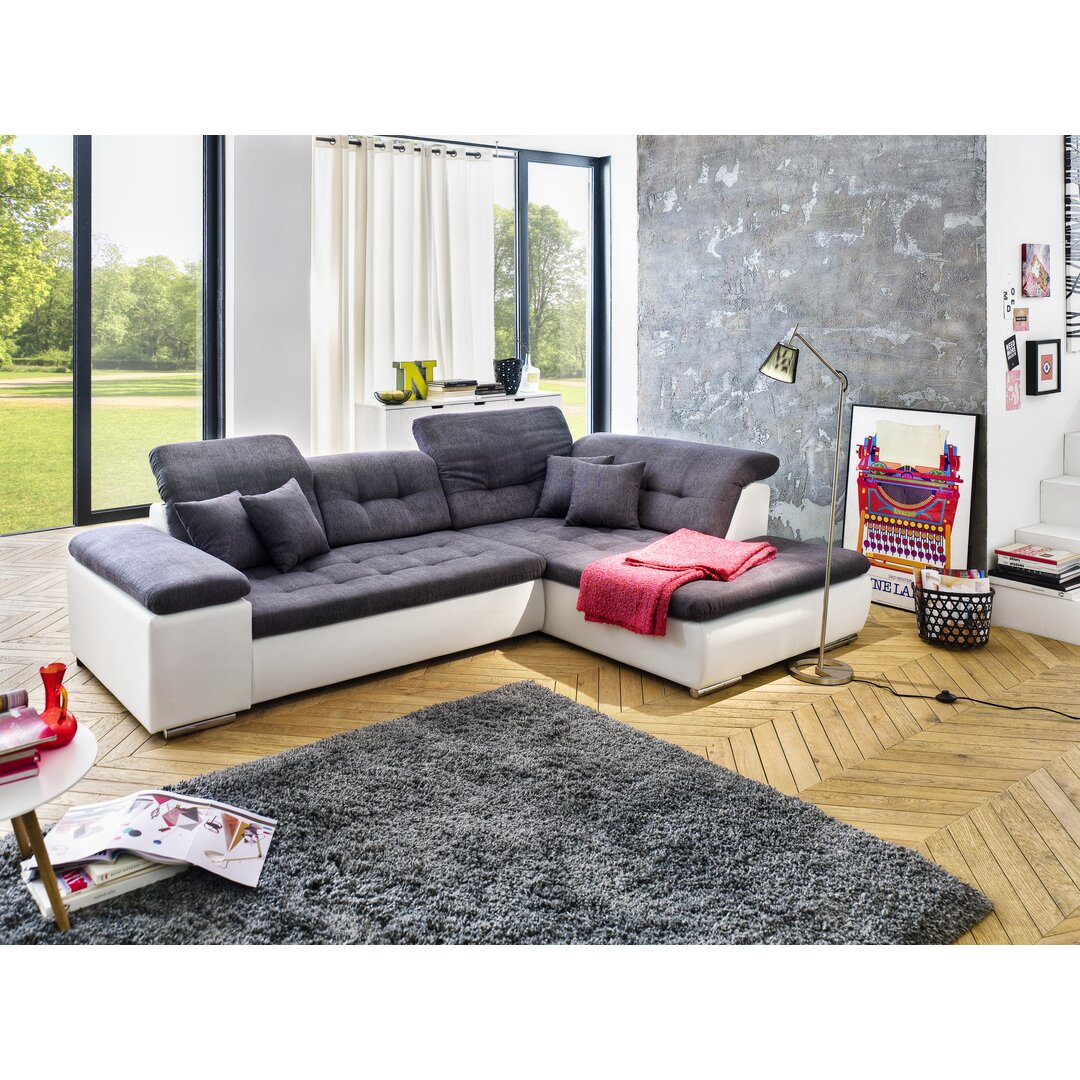 Dieses Modell hat 2 Stoffe: Sitz und Rückenlehne: D471 Phoenix-Grau = 100% Polyester, Korpus: Alabama 01 Weiß: 60% PU, 36% PE, 4% Baumwolle Perspections Ausrichtung: Recamiere rechts