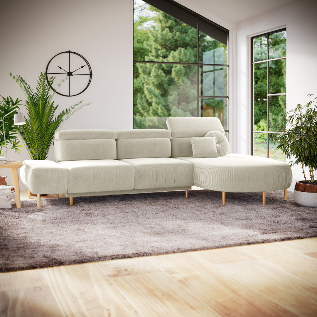 Unser Ecksofa ist besonders funktional und bequem. Das Möbelstück passt sowohl zu einer klassischen als auch zu einer modernen Einrichtung. Canora Grey Beinfarbe: Gold, Polsterfarbe: Creme Polyestermischgewebe, Ausrichtung: Ausrichtung Rechts