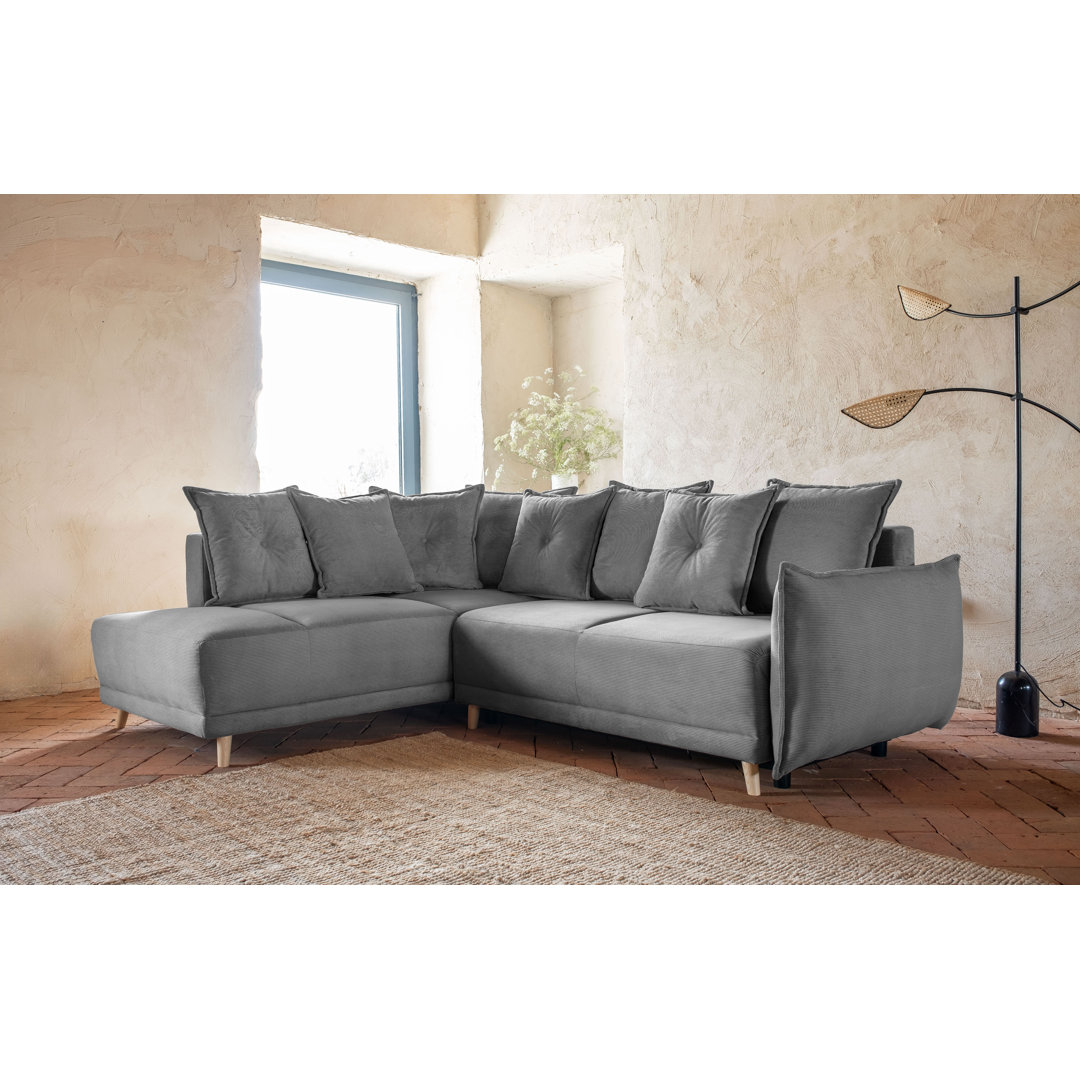 Unverwechselbare Form, gemütlicher Stil und ein entspannendes Sitzerlebnis dank bequemer Rückenkissen. Einzigartige Armlehne mit dem Aussehen und Gefühl eines zusätzlichen Kissens. Bett und Stauraum inklusive. Der strukturierte Stoff vermittelt ein Gefühl von Wärme, während die ausgefallenen Knöpfe und Holzbeine die Aufmerksamkeit auf sich ziehen und subtil auf die skandinavischen Ursprünge hinweisen. MiuForm Ausrichtung: Links ausgerichtet, Polsterfarbe: Grau
