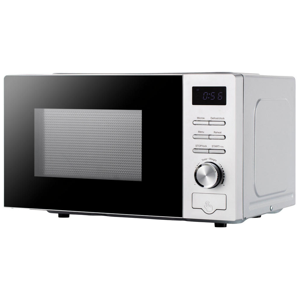 Mit der silberfarbigen Mikrowelle holen Sie sich einen praktischen Küchenhelfer ins Haus, der einfach zu bedienen ist und zuverlässig arbeitet. Ob zum schnellen Aufwärmen von Speisen oder zum Auftauen gefrorener Lebensmittel – dieses Modell überzeugt durch seine solide Leistung und benutzerfreundliche Ausstattung. Technische Kennzeichen: Farbe: Silber Leistung: ca. 700 Watt Fassungsvolumen: ca. 20 Liter 5 Leistungsstufen 60-Minuten-Timer Glas-Drehteller mit ca. 25,5 cm Durchmesser